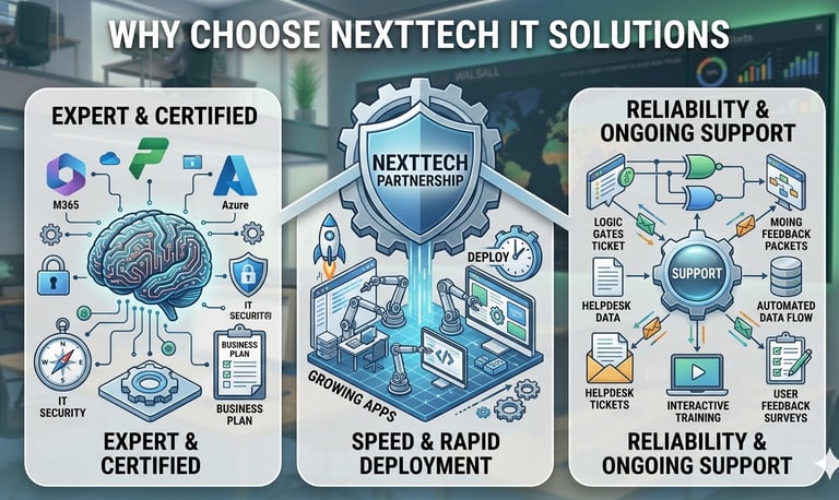 Technology should never be a bottleneck. At NextTech IT Solutions, we provide strategic IT consulting that aligns your digital infrastructure with your business goals. Our experts help you move beyond maintaining systems to maximizing your technology investment, focusing on the Microsoft ecosystem to build a leaner, more agile organization.
