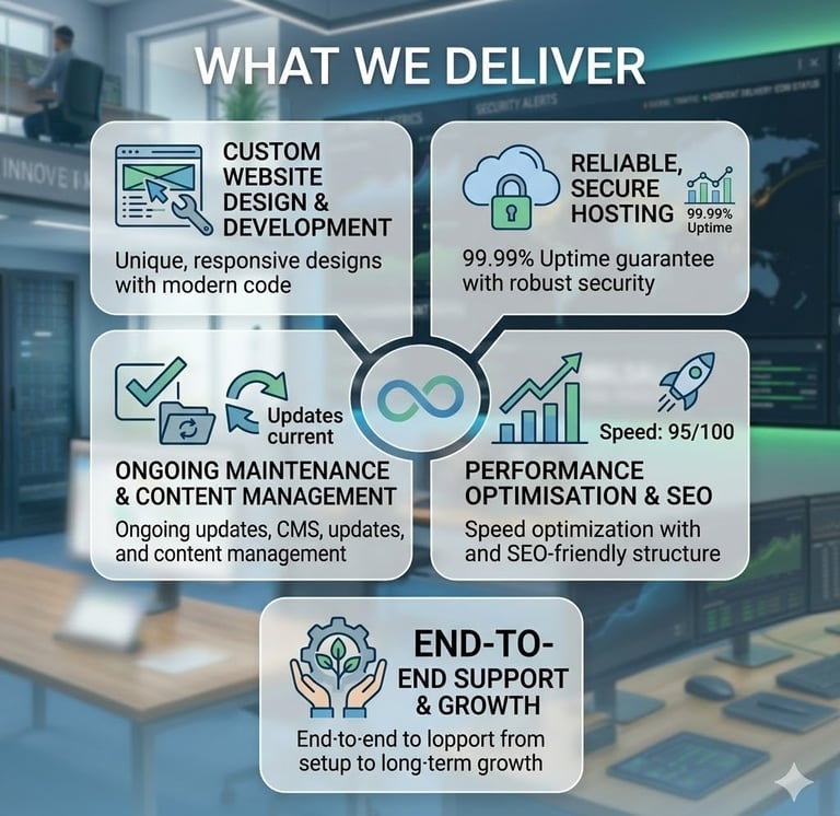 Our ongoing management service keeps everything running smoothly with regular updates, performance optimisation, content changes, and proactive monitoring. You focus on your business while we take care of the technology behind it.